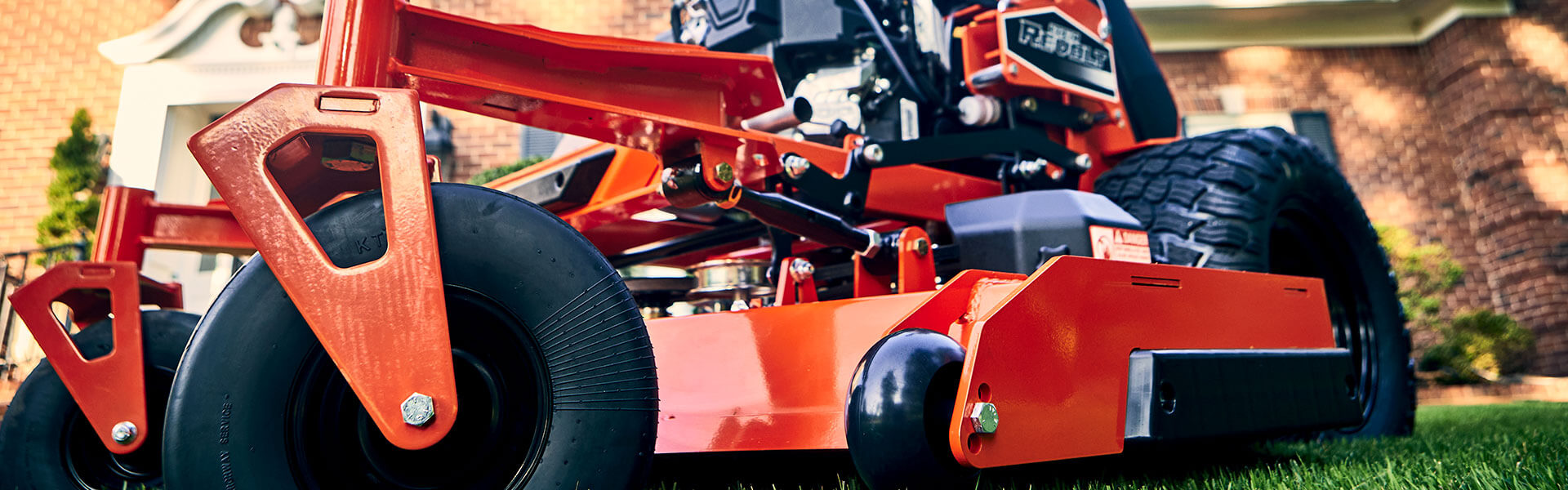 The Revolt's shorter frame and curved I-Beam front fork give you a lower center of gravity for maximum maneuverability and visibility. No other stand-on mower can compete with this unbelievably smooth ride.